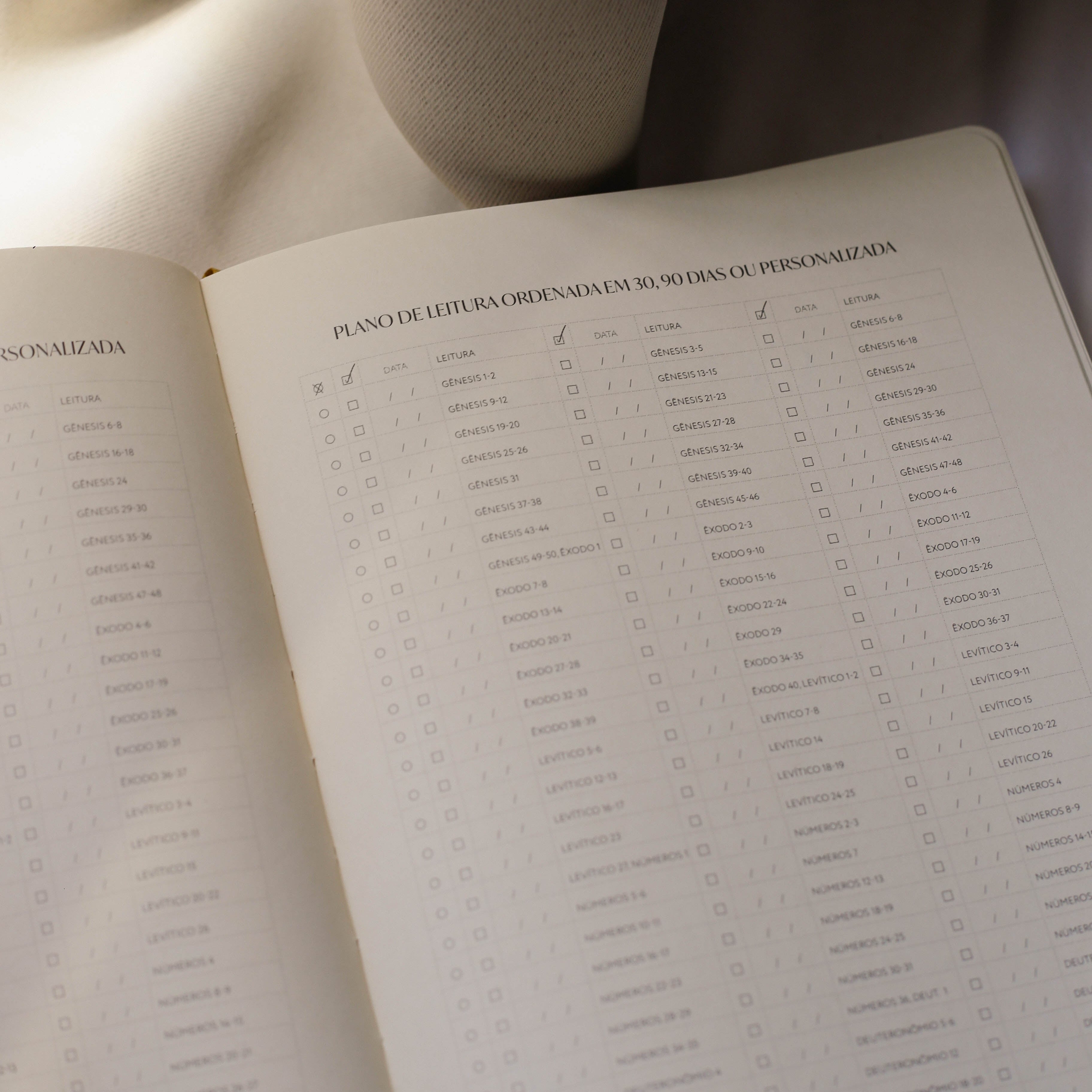 Este é o recorte da Bíblia com foco na porção do Pentateuco, aqui você irá encontrar os textos bíblicos de: Gênesis, Êxodo, Levítico, Números e Deuteronômio, com bastante espaço para anotação ou para artes do Bible Journaling. Além disso, a nova edição traz ferramentas de leitura bíblica que te ajudarão a planejar a sua leitura e se aprofundar nos livros do Pentateuco!