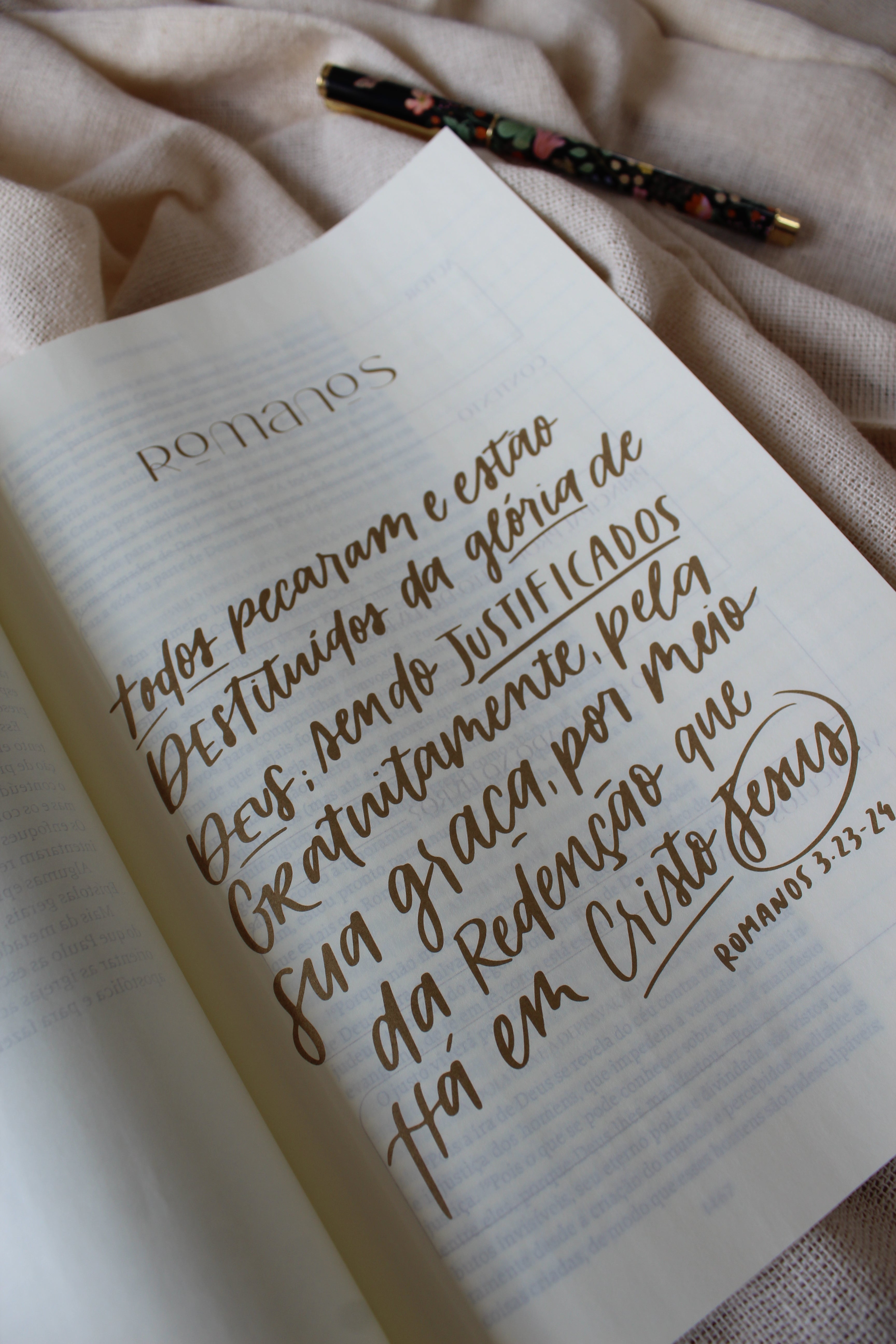 Você está procurando uma Bíblia de Anotações perfeita, com um espaço de anotações leve, uma letra em bom tamanho, e além de tudo muito bonita? A The Purpose Book foi pensada para você! Com um espaço de anotação clean e minimalista, pode ser usada para bible journaling (até mesmo com aquarela, pois possui a melhor gramatura possível de papel bíblia); mas, ainda possui pauta pontada para guiar a escrita daqueles que desejam usá-la para anotações de leitura e estudo bíblico ou escrever orações, por exemplo.