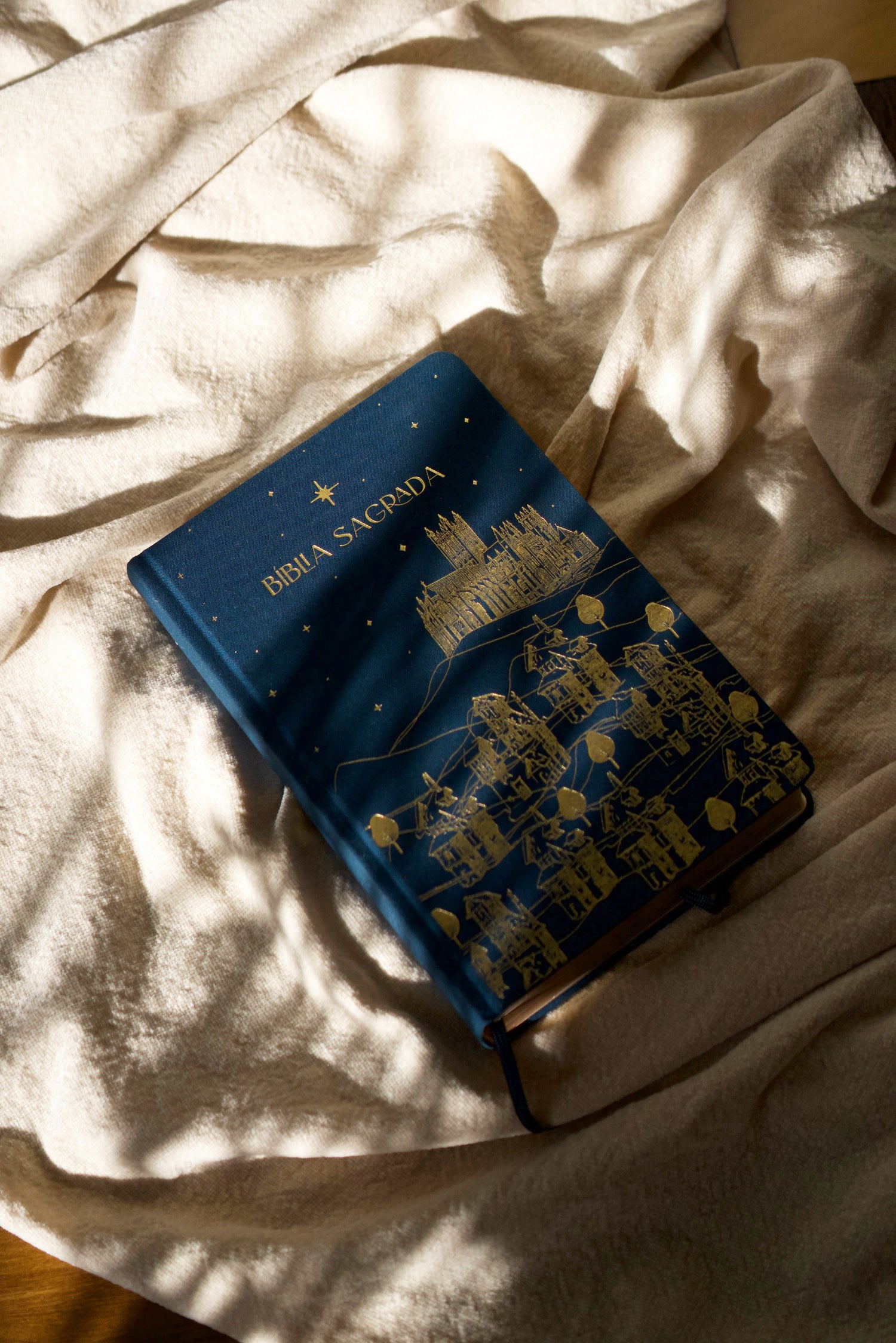 - Tecido azul escuro com hotstamping dourado - Capa Dura (modelo Reino)